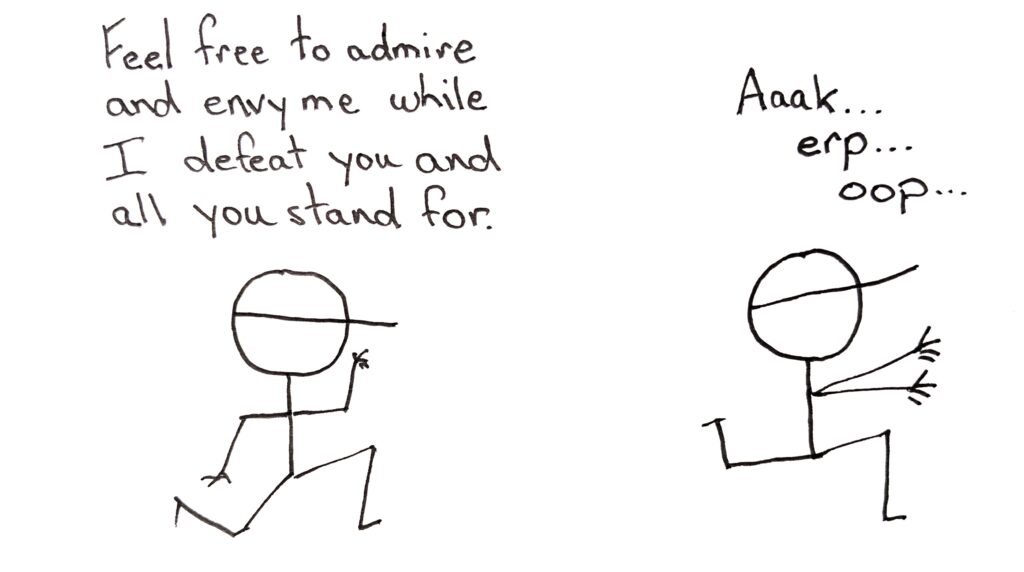 Anyway, I must also point out that we are usually shown just a wee flaw that we don’t have to look too hard to see. They have a blemish or even two. Not arrogance, because arrogance does not seem to be a blemish, given its ubiquity in pop culture heroes.